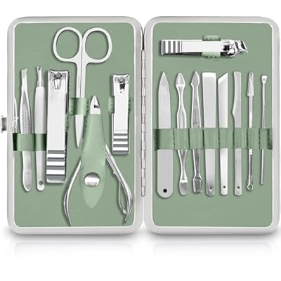 Utopia Care - Manicure Kit for Women and Men, Manicure Set with Nail Clippers or Nail Kit Includes Fingernail & Toenail Clippers,15-Pcs Pedicure Kit Stocking Stuffers with Travel Case - Green
