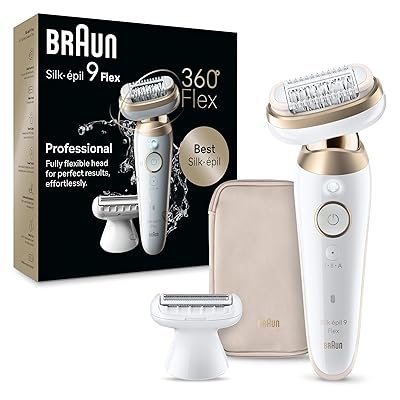Braun Silk-epil 9 Flex Epilator, 360 Flex and Pivoting Head, Wet and Dry, Includes Shaver Head, Trimmer Comb, SES9-041 3D, Tinted Gold, Holiday Gifts for Women
