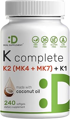 DEAL SUPPLEMENT Vitamin K Complete - 240 Coconut Oil Softgels | High Potency Vitamin K2 MK-7 and MK-4 & K1 | Full Spectrum Triple Vitamin K | Bone, Joint, Immune Support Non-GMO