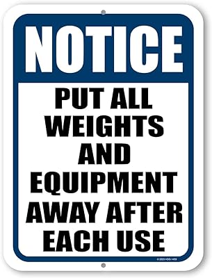 Honey Dew Gifts, Notice Put All Weights and Equipment Away After Each Use, 9 inch by 12 inch, Metal Sign Post, Wall Signs for Home, Workout Room Decor, Home Gym Decor, HDG-1459
