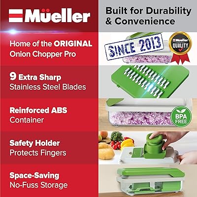 Mueller Vegetable Chopper 9 Blade, Mandoline Slicer, Food Veggie Chopper, Cheese Grater, Onion Vegetable Cutter with Container, Dicer, Kitchen Gadgets & Essentials, White SandGreen