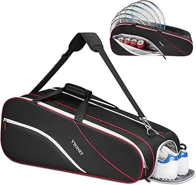 Ytonet Tennis Bag 6 Rackets, Large Tennis Racket Bag for Men Women with Insulated Pocket Shoe Compartment Water Resistant 3-Ways Carry Padded Badminton Cover for ProTeamFamiliy Training, Black