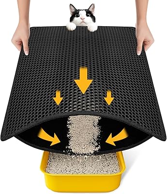 Cat Litter Mat Litter Box Mat, EVA Honeycomb Double Layer Design, Urine & Waterproof, Scatter Control Kitty Litter Mat, Less Waste, Easier To Clean,Washable, Black