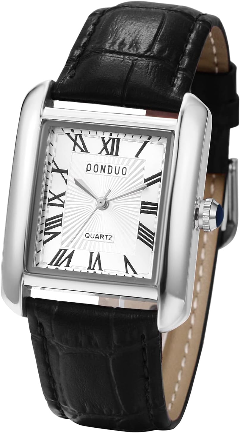 JewelryWe Couple Watches Vintage Partner Friendship Leather Bracelet Watch Analogue Quartz Wrist Watch Classic Rectangular Casual Watch with Roman Numerals Dial Gift for Men Women