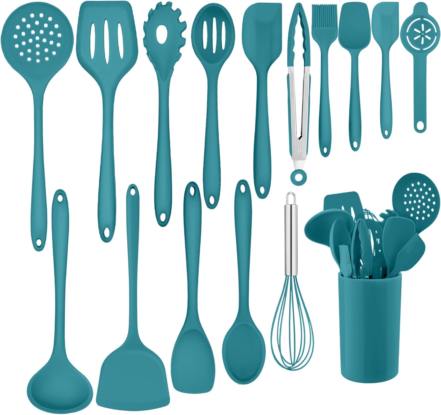 Homikit Kitchen Utensil Set 16-Piece Silicone Kitchen Utensils Cooking Utensils Set with Utensil Holder Heat-resistant Cooking Cutlery Healthy and Non-Stick Dishwasher Safe Blue